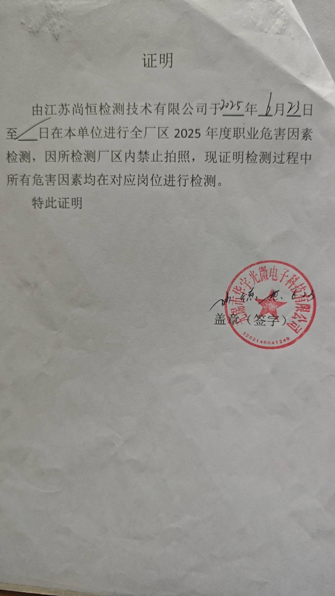 職業(yè)病危害因素檢測報告 Z20250477 |
