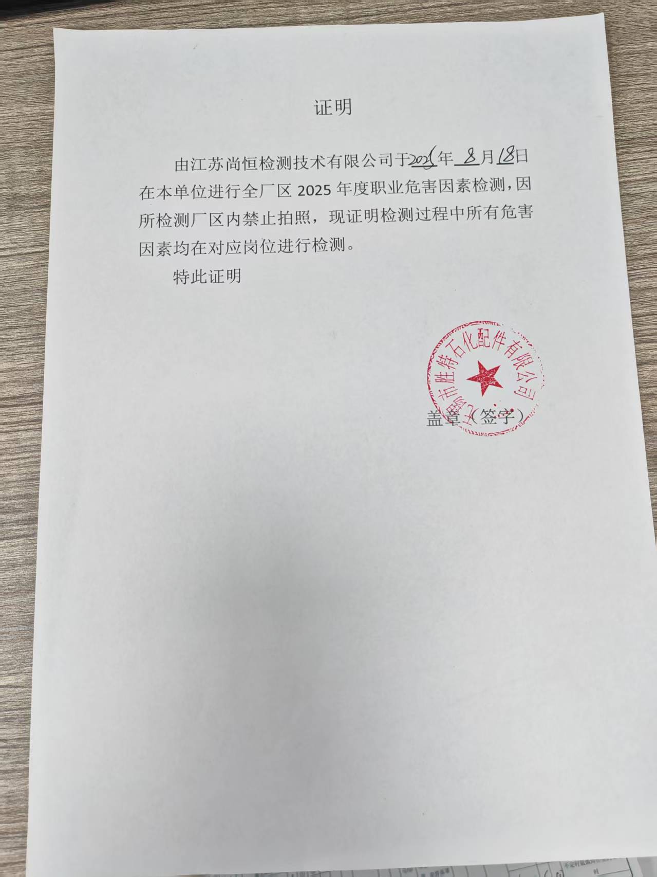 職業(yè)病危害因素檢測報告 Z20250669 |