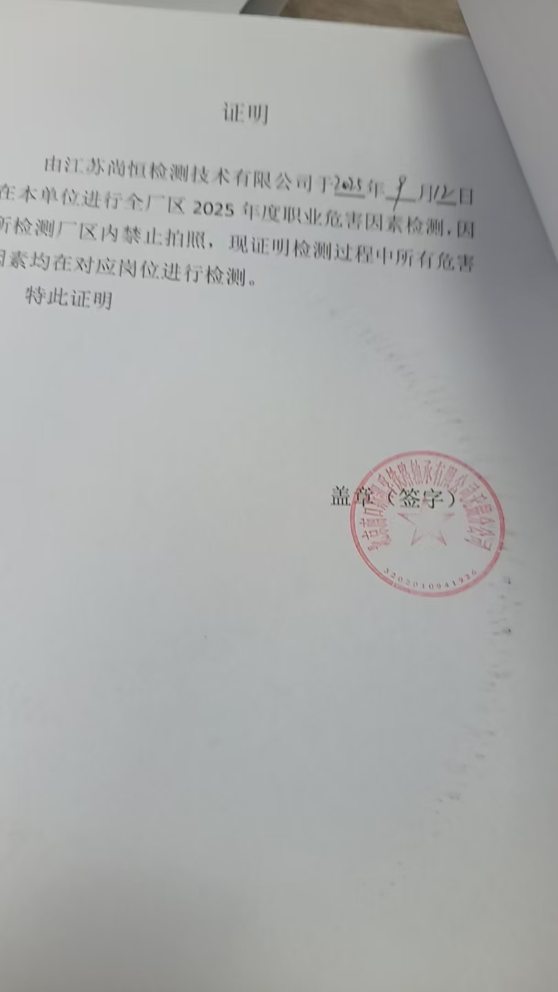 職業病危害因素檢測報告 Z20250738 |