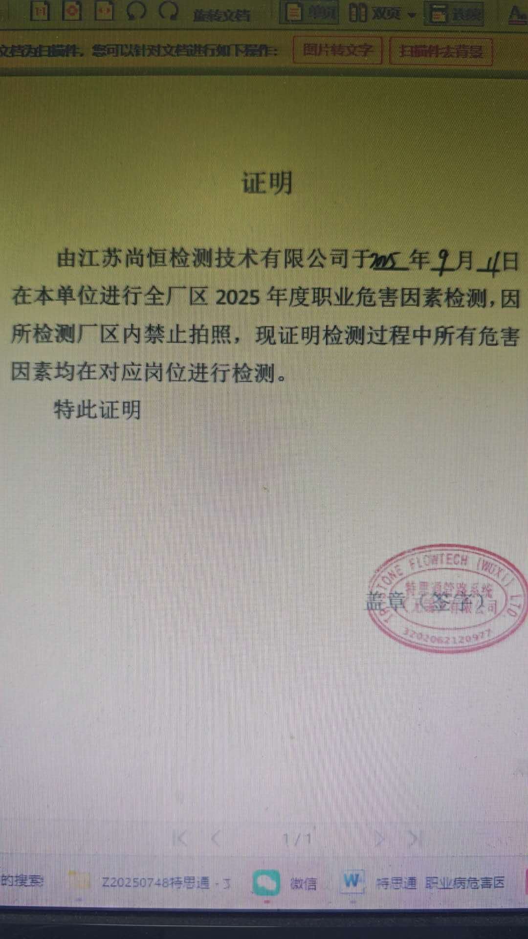 職業(yè)病危害因素檢測報告 Z20250748 |