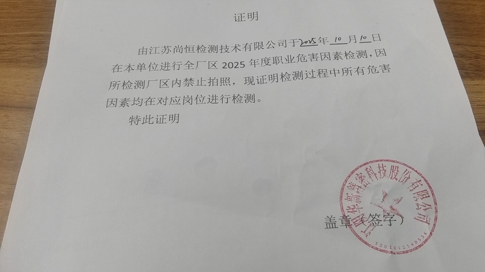 用人單位名稱 無錫市長通敏感電器廠 用人單位注冊地址 無錫市惠山區(qū)玉祁街道南聯(lián)村口 聯(lián)系人 張麗君 報告名稱及編號 職業(yè)病危害因素檢測報告 Z20250732 項目組人員 耿朔辰、方佐、周康、尚志華 現(xiàn)場調(diào)查人員 耿朔辰、方佐 現(xiàn)場調(diào)查時間 2025年8月28日 用人單位陪同人 張麗君 采樣與測量人員 周康、尚志華 采樣與測量時間 2025年11月18日 用人單位陪同人 張麗君 現(xiàn)場照片(現(xiàn)場調(diào)查及現(xiàn)場采樣與測量照片,含企業(yè)名稱或標(biāo)識的合影照片) ? ? ? ? ?...