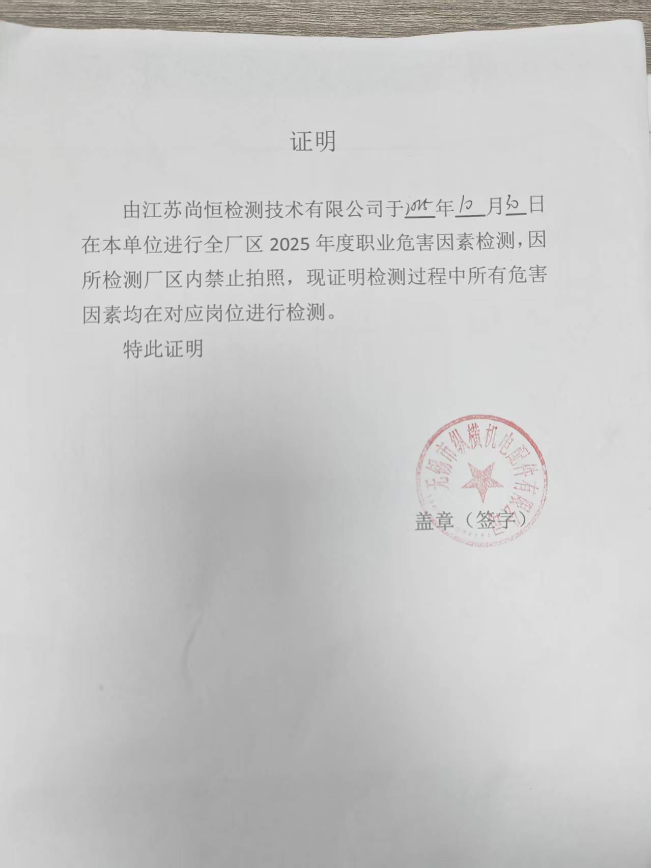 用人單位名稱 無錫達倫金屬科技有限公司 用人單位注冊地址 無錫市鵝湖鎮青蕩村 聯系人 錢偉民 報告名稱及編號 職業病危害因素檢測報告 Z20251006 項目組人員 耿朔辰、方佐、趙婕、崔琳杰 現場調查人員 耿朔辰、方佐 現場調查時間 2025年11月3日 用人單位陪同人 錢偉民 采樣與測量人員 趙婕、崔琳杰 采樣與測量時間 2025年11月17日 用人單位陪同人 錢偉民 現場照片(現場調查及現場采樣與測量照片,含企業名稱或標識的合影照片) ? ? ? ? ?...